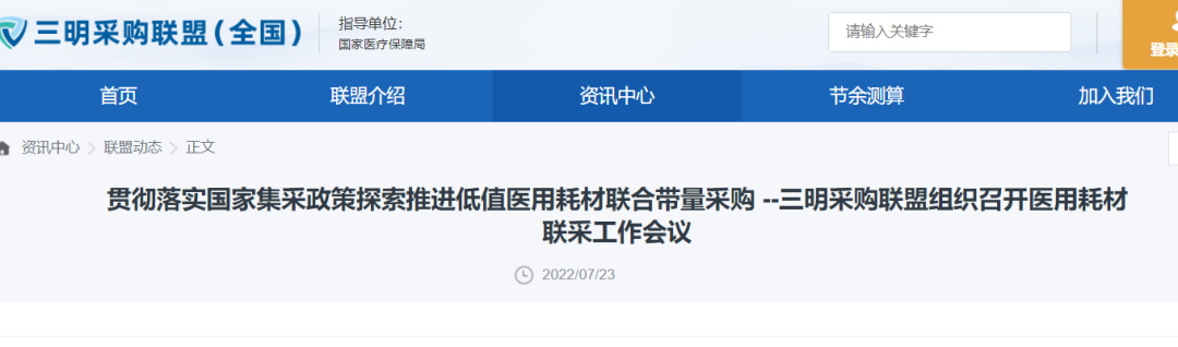2022年7月28日, 株洲联盟医药集中限价采购平台发布《关于邀请申报湖南省低值医用耗材带量采购企业产品资料的通知》,确定湖南省将开展全省低值耗材带量采购。
